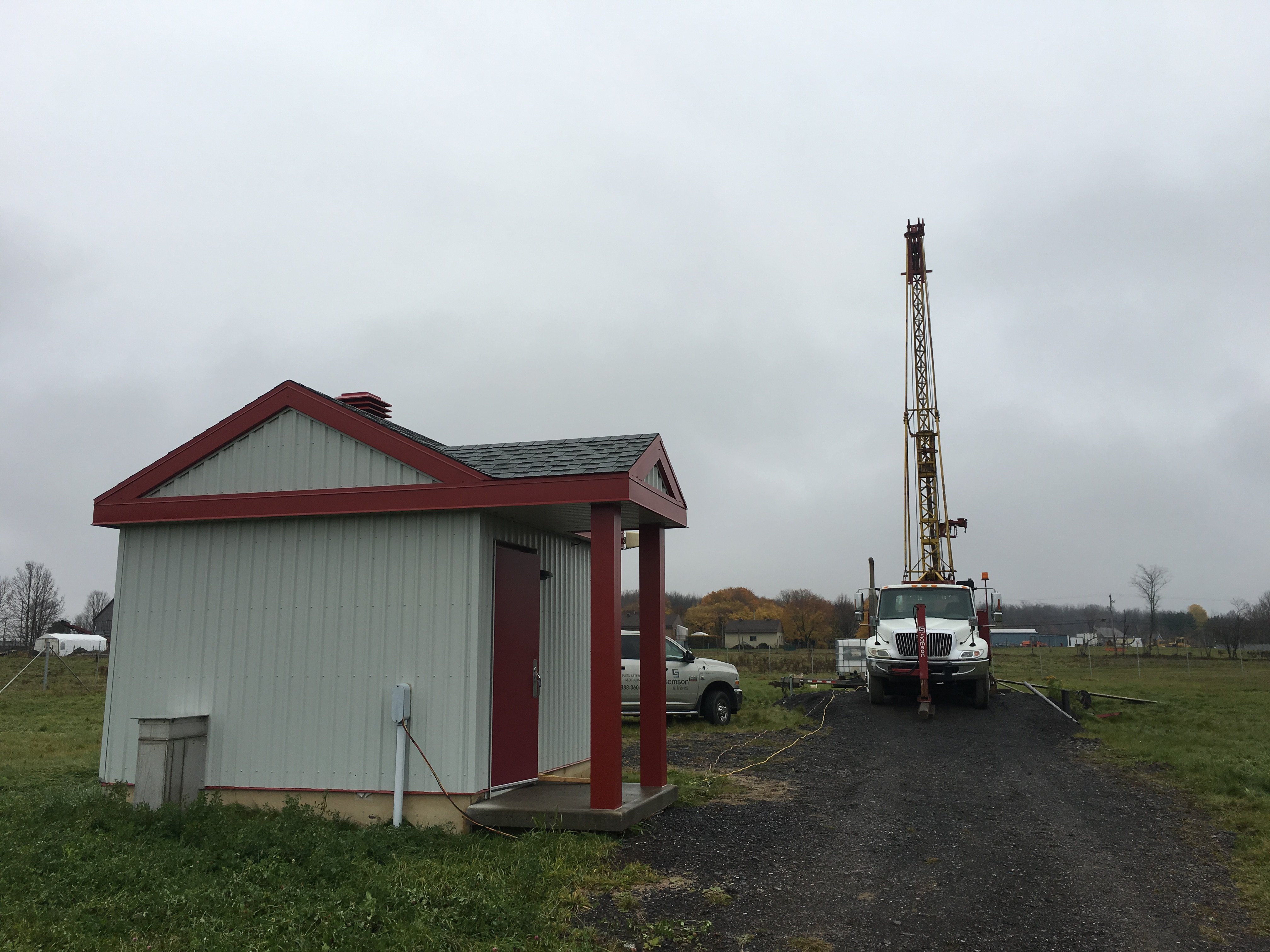 Nettoyage d'un puits artésien de la municipalité de Saint-Apollinaire situé sur le rang Bois-Joly. Le nettoyage a été effectué avec une foreuse à percussion.