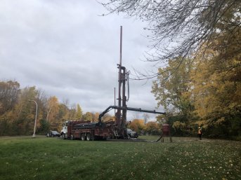 Forage de puits artésien pour la recherche en eau de la municipalité de Beauharnois en Montérégie.