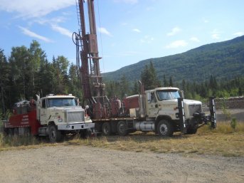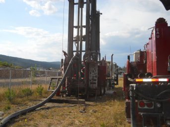 Forage d'un sondage/piézomètre pour la recherche en eau de la municipalité de Saint-Urbain dans Charlevoix.