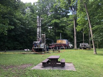 Forage d'un puits test géothermique pour le projet de l'Halte Routière de Saint-Michel-de-Bellechasse.