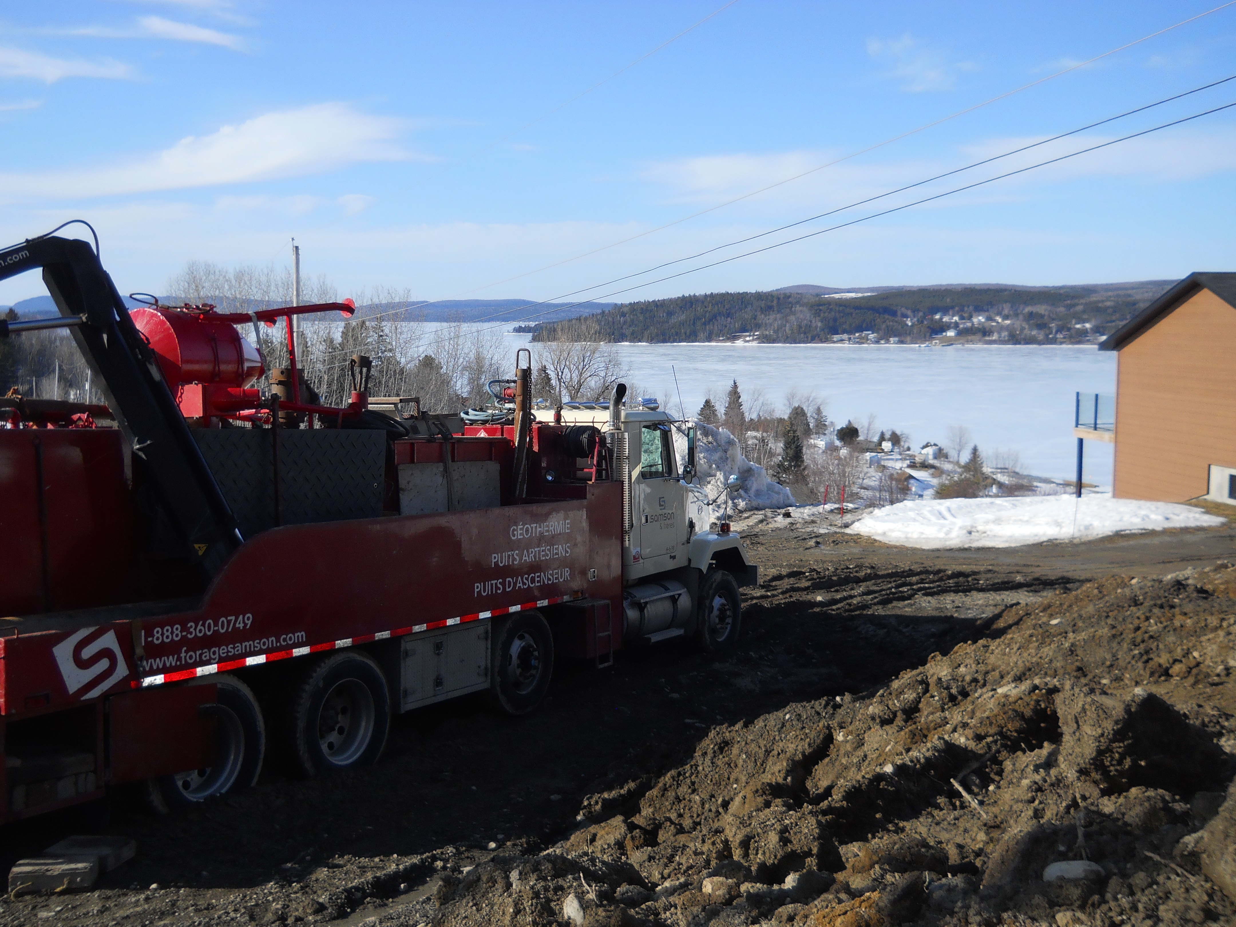 Forage d'un puits géothermique d'une profondeur de 560' pour une nouvelle résidence de Notre-Dame-du-Lac au Témiscouata.