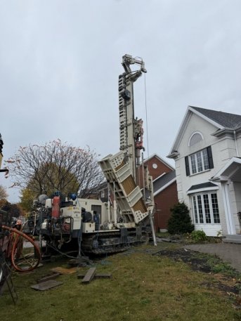 Forage d'un puits géothermique pour une résidence située sur la rue Émilie-Chamard à Québec.
