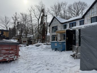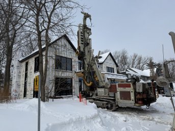 Forage de deux puits géothermiques de 375' pour une nouvelle résidence construite sur l'Avenue Pasteur à Québec.