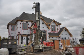 Forage d'un puits géothermiques d'une profondeur de 540' pour une résidence de Neuchâtel, Québec.