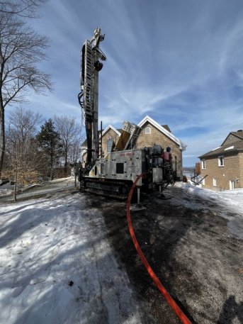Forage d'un puits géothermique pour une résidence située sur la rue du Commodore dans le secteur Saint-Nicolas de Lévis.