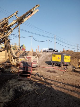 Forage d'ancrages au roc pour un mur berlinois au projet Newman à Lasalle, Montréal.