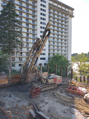 Forage d'ancrages au roc pour une projet sur le boulevard Gouin Est à Montréal.