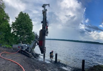 Forage de pieux pour une nouvelle résidence située en bordure de Fleuve Saint-Laurent sur le Chemin de la Plage Saint-Laurent à Cap-Rouge, Québec.