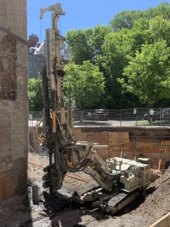 Forage de pieux pour une projet sur la rue Saint-Paul dansle Vieux-Québec.