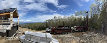 Forage d'un puits artésien pour une nouvelle résidence située sur la rue du Flanc dans le Domaine Charlevoix à Baie-Saint-Paul. Une collerette de bentonite était nécessaire en raison de la proximité du roc. Une pompe submersible a par la suite été installée dans le puits afin d'alimenter la maison en eau.
