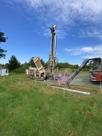 Forage d'un puits artésien pour une résidence du rang Saint-Anne à Armagh. Une pompe submersible a par la suite été installée dans le puits afin d'alimenter la maison en eau.