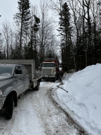 Forage d'un puits artésien pour une nouvelle résidence située sur le Chemin de la Corniche dans le Domaine Charlevoix à Baie-Saint-Paul. Une collerette de bentonite était nécessaire en raison de la proximité du roc. Une pompe submersible a par la suite été installée dans le puits afin d'alimenter la maison en eau.