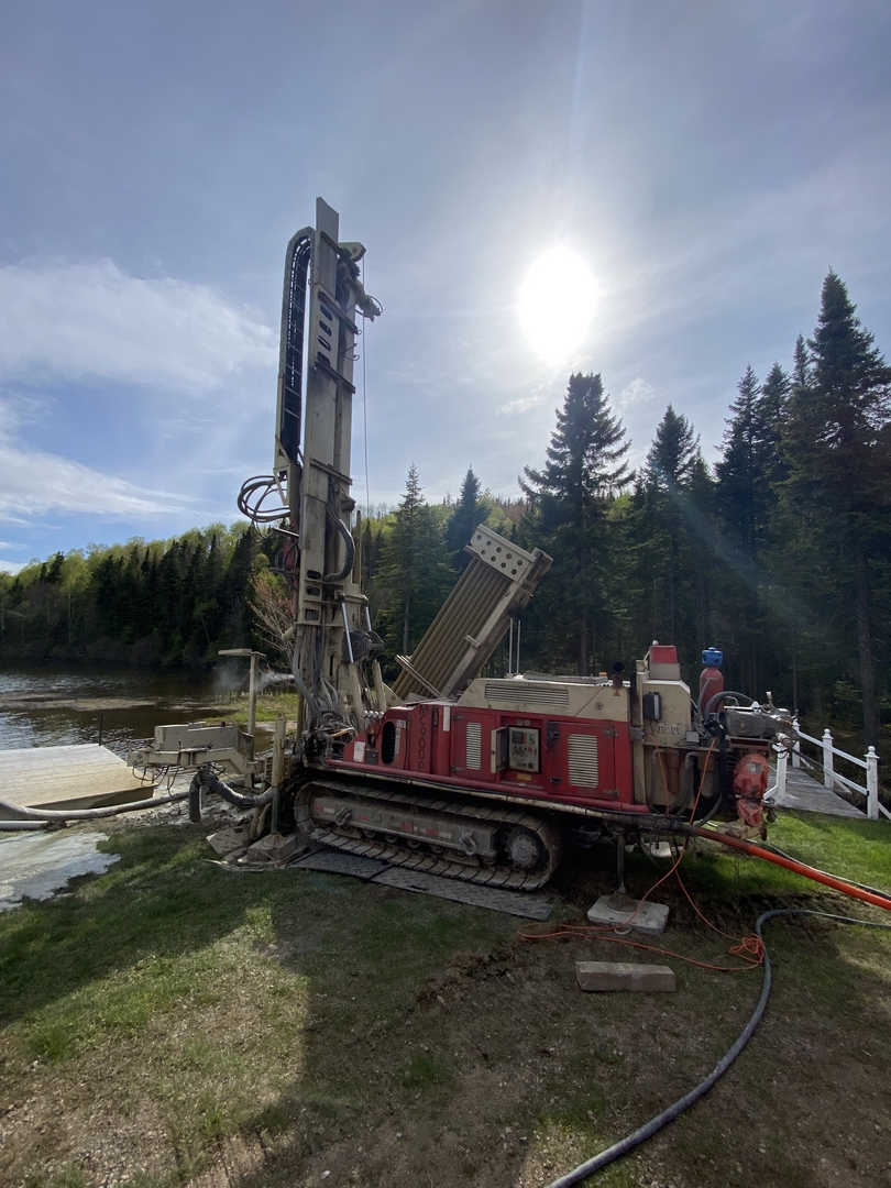 Forage d'un puits artésien pour une résidence située sur le Chemin Sainte-Catherine à Baie-Saint-Paul dans Charlevoix. Une pompe submersible a par la suite été installée dans le puits afin d'alimenter la maison en eau.