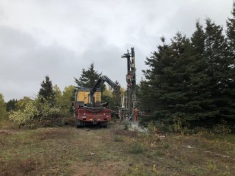 Forage d'un puits artésien pour une nouvelle résidence située sur le Chemin Cap-aux-Corbeaux Sud à Baie-Saint-Paul, Charlevoix. Le puits artésien a été réalisé avant la construction de la résidence afin de ne pas nuire à l'échéancier des travaux. La foreuse sur chenilles était un atout car le terrain était à l'étât naturel.