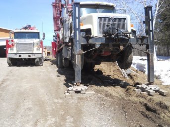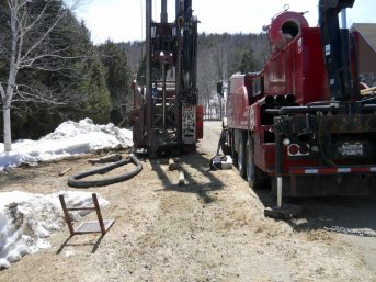Forage d'un puits artésien pour une résidence de Baie-Saint-Paul, Charlevoix. Une pompe submersible en stainless a par la suite été installée dans le puits artésien pour alimenter la maison en eau potable.