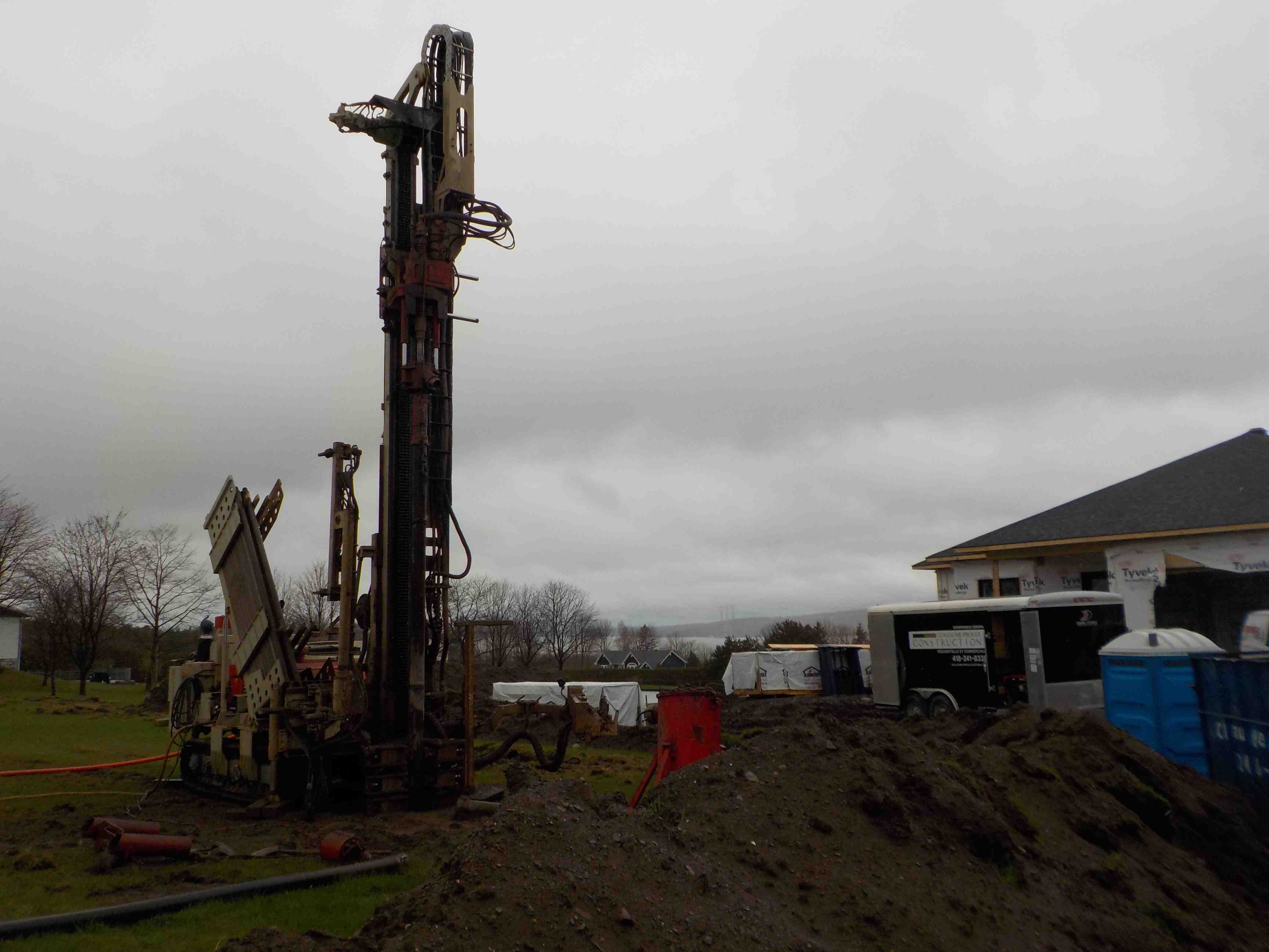 Forage d'un puits artésien pour une nouvelle résidence située sur la Route du Fleuve à Beaumont. Une collerette de bentonite était nécessaire en raison de la proximité du roc. Une pompe submersible en acier inoxydable a par la suite été installée dans le puits artésien afin d'alimenter la maison en eau. Nous avons également foré un puits géothermique qui permettra aux client d'utiliser la température du sol pour chauffer et climatiser la maison.