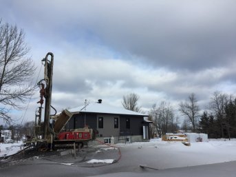 Forage d'un puits artésien pour une nouvelle résidence située sur le chemin des Étangs à Berthier-sur-Mer. une collerette de bentonite était nécessaire en raison de la proximité du roc. Une pompe submersible en acier inoxydable a également été installée dans le puits pour alimenter la maison en eau.