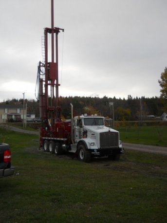 Forage d'un puits artésien avec collerette de bentonite pour une nouvelle résidence du Cap-St-Ignace. Une pompe submersible en acier inoxydable a par la suite été installée dans le puits artésien pour alimenter la résidence en eau potable.