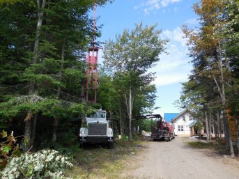 Forage d'un puits artésien pour une nouvelle résidence du Cap-St-Ignace. Installation d'une pompe submersible pour alimenter la résidence en eau potable.