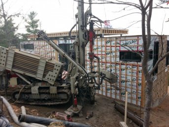 La foreuse sur chenilles était nécessaire en raison de l'espace restreint sur le terrain.