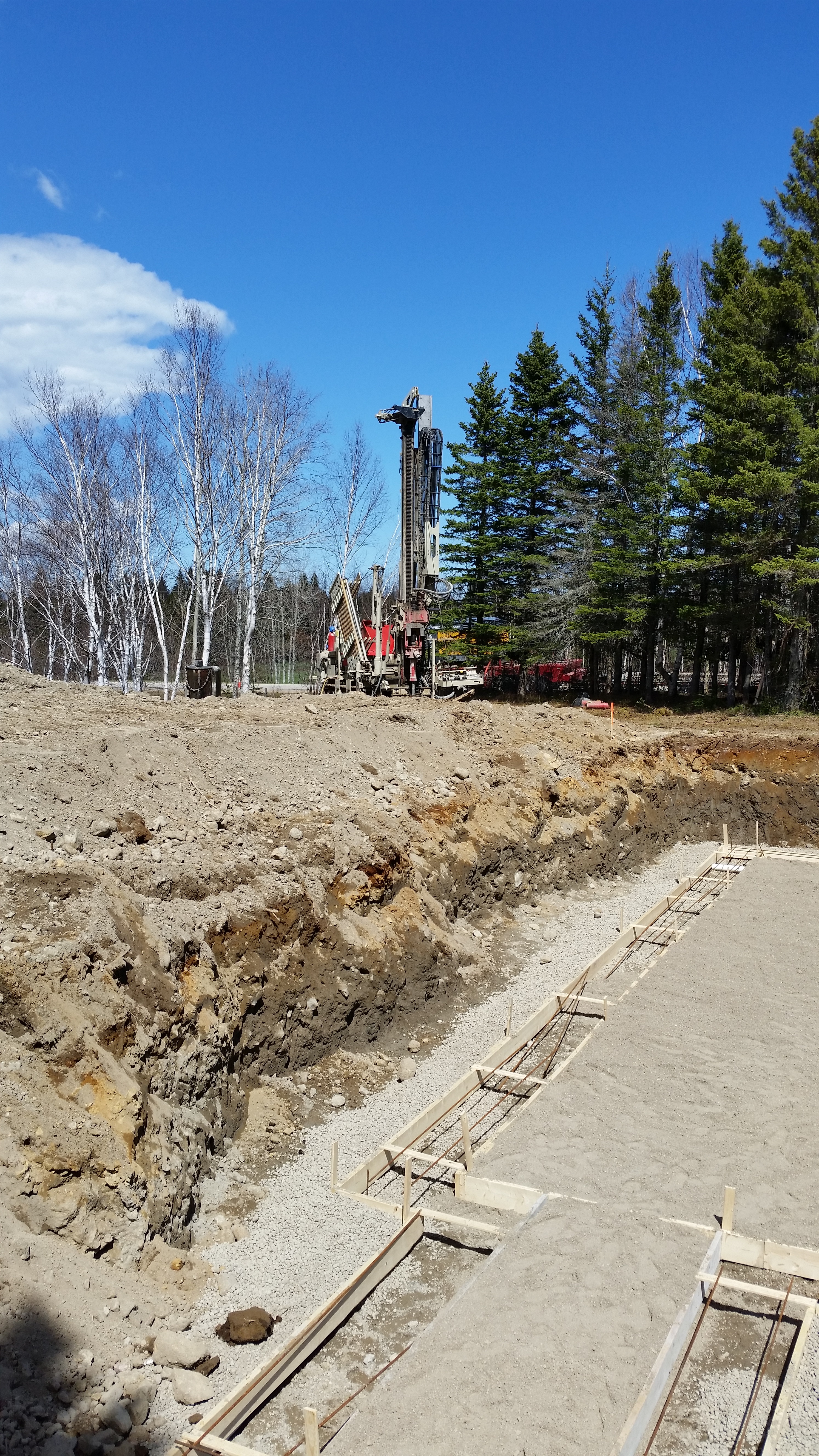 La foreuse sur chenilles était nécessaire pour réaliser ce mandat car pour se rendre sur le site de forage, nous devions contourner le trou excavé pour les fondations de la résidence.