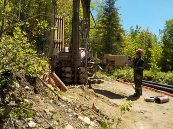 Forage d'une puits artésien pour une nouvelle résidence située sur la rue Principale à Saint-Aimé-des-Lacs, Charlevoix. Une collerette de bentonite était nécessaire en raison de la proximité du roc. Une pompe submersible en acier inoxydable a par la suite été installée dans le puits artésien afin d'alimenter la résidence en eau.