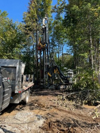 Forage d'un puits artésien pour une nouvelle maison construite sur le Rue des Trois-Saults à Boischatel. Une pompe submersible a par la suite été installée dans le puits artésien.