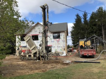 Forage d'un puits artésien scellé pour une nouvelle maison située sur la route du Fleuve à Beaumont. Une collerette de bentonite était nécessaire en raison de la proximité du roc. Une pompe submersible a par la suite été installée dans le puits afin d'alimenter la maison en eau. Les clients ont également optés pour la géothermie comme système de chauffage/climatisation. Nous avons donc procédé au forage et aménagement d'un puits géothermique.