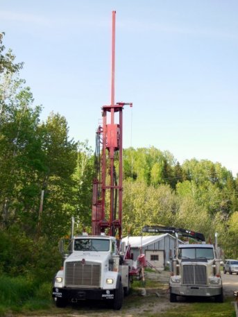Forage d'un puits artésien donnant 50 gal/min pour une résidence de Forestville, Côte-Nord.