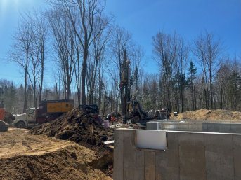 Forage d'un puits artésien pour une nouvelle résidence située sur la route des Trois-Saults à Boischatel. Le client a également opté pour la géothermie comme système de chauffage. Une pompe submersible a par la suite été installée dans le puits artésien