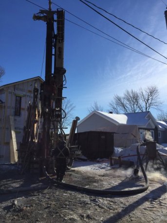 Forage d'un puits artésien pour une nouvelle résidence située sur le Chemin du Côteau-des-Chênes à La Durantaye dans Bellechasse. Une collerette de bentonite était nécessaire en raison de la proximité des installations septiques. Une pompe submersible a par la suite été installée dans le puits afin d'alimenter la maison en eau.