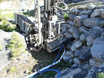 L'emplacement du puits artésien était entouré de plusieurs roches. La foreuse sur chenilles était donc indispensable en raison de l'accès très restreint.