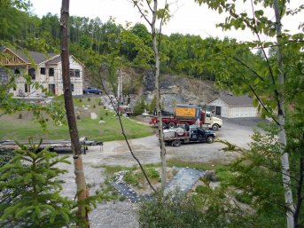 Forage d'un puits artésien pour une nouvelle résidence de La Malbaie dans Charlevoix. Le forage nécessitait l'aménagement d'une collerette de bentonite en raison de la proximité du socle rocheux. Un système de pompage a par la suite été installée dans le puits artésien afin d'alimenter la résidence en eau potable.