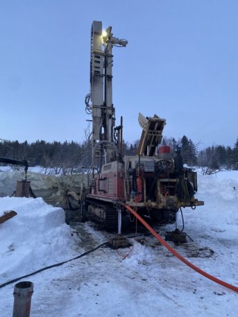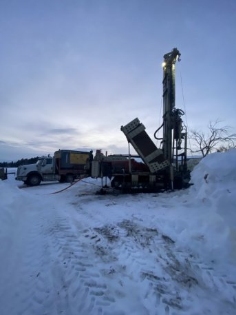 Forage d'un puits artésien pour une résidence située sur le rang Saint-Jean-Baptiste à La Malbaie dans Charlevoix. Une collerette de bentonite était nécessaire en raison de la proximité du roc.