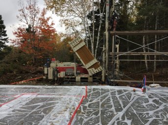 Forage d'un puits artésien pour un nouveau bâtiment construit dans la Côte Bellevue à La Malbaie dans Charlevoix. Une collerette de bentonite était nécessaire en raison de la proximité du roc.