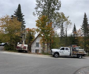 Forage d'un puits artésien pour une nouvelle résidence située sur le Chemin de la Vallée au Lac-Beauport. Une pompe submersible a par la suite été installée dans le puits.