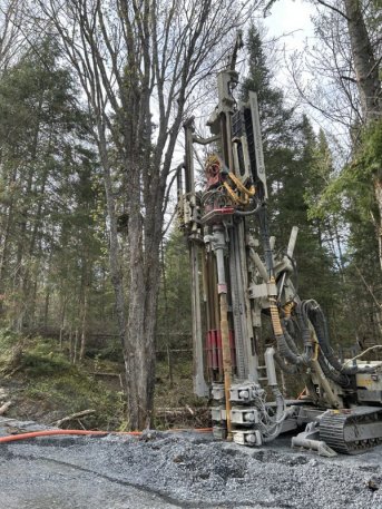 Forage d'un puits artésien pour une nouvelle résidence située sur la rue du Coteau à Lac-Etchemin. Une collerette de bentonite était nécessaire en raison de la proximité du roc. Une pompe submersible a par la suite été installée dans le puits afin d'alimenter la maison en eau.