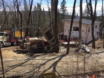 Forage d'un puits artésien pour une nouvelle résidence située sur la rue des Pins au Lac-Sergent dans Portneuf. Une pompe submersible a par la suite été installée dans le puits afin d'alimenter la maison en eau.
