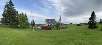Forage d'un puits artésien pour une résidence située sur la route du Fleuve aux Éboulements dans Charlevoix. Une collerette de bentonite était nécessaire en raison de la proximité du roc. Une pompe submersible a par la suite été installée dans le puits afin d'alimenter la maison en eau.