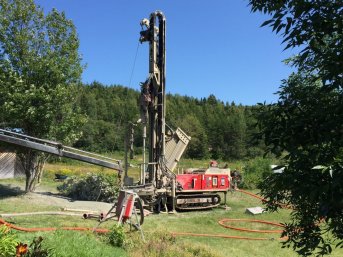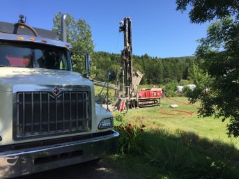 Forage d'un puits artésien pour une résidence située sur le rang Sainte-Catherine dans la municipalité Les Éboulements, Charlevoix. Une pompe submersible a été installée dans le puits afin d'alimenter la résidence en eau.