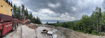 Forage d'un puits artésien pour une nouvelle résidence située sur le Chemin de la Seigneurie aux Éboulements dans Charlevoix. Une collerette de bentonite était nécessaire en raison de la proximité du roc. Une pompe submersible a par la suite été installée dans le puits afin d'alimenter la maison en eau.