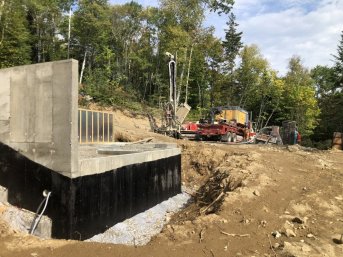 Forage d'un puits artésien pour une nouvelle résidence construite sur le Chemin du Domaine dans le Domaine Charlevoix aux Éboulements. Une collerette de bentonite était nécessaire en raison de la proximité du roc. Une pompe submersible a par la suite été installée dans le puits artésien.