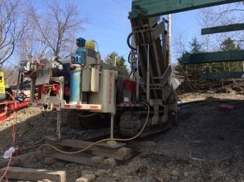 La configuration du terrain ne laissait qu'un endroit pour réaliser le puits artésien en respectant les normes du MDDELCC. La foreuse sur chenilles permettait de s'y installer malgré l'inclinaison du terrain et l'espace restreint. De plus, Hydro-Québec a isolé les fils électriques car il était impossible de respecter la distance sécuritaire.