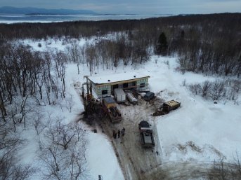 Forage d'un puits artésien pour une nouvelle maison construite sur la route 132 à Montmagny, près de Berthier-sur-Mer. Une pompe submersible a par la suite été installée dans le puits.