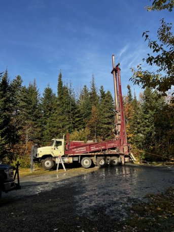 Forage d'un puits artésien pour une maison située sur le chemin de la Martine à Petite-Rivière-Saint-François dans Charlevoix. Une pompe submersible a par la suite été installée dans le puits afin d'alimenter la résidence en eau.