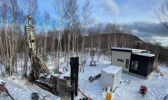 Forage d'un puits artésien pour une nouvelle résidence située sur le Chemin Marius-Barbeau à Petite-Rivière-Saint-François. Une pompe submersible a par la suite été installée afin d'alimenter la maison en eau.