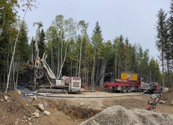 Forage d'un puits artésien pour une nouvelle résidence construite sur le Chemin Pierre-Perreault à Petite-Rivière-Saint-François dans la région de Charlevoix. Une pompe submersible a par la suite été installée dans le puits pour alimenter la maison en eau.