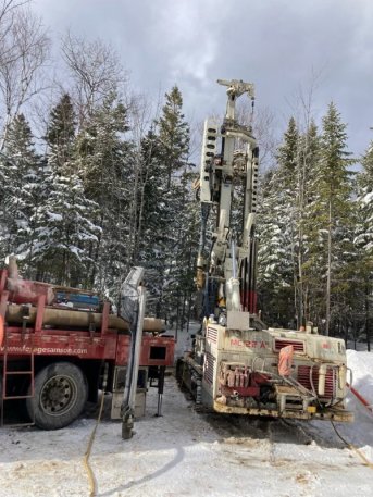 Forage d'un puits artésien pour une nouvelle résidence située sur la rue Principale à Petite-Rivière-Saint-François dans la région de Charlevoix. Une pompe submersible a par la suite été installée dans le puits afin d'alimenter la maison en eau.