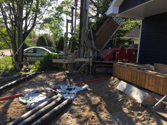 Une foreuse sur chenilles était nécessaire pour réaliser ce mandat car l'espace sur le terrain était très restreint, il y avait présence de fils électriques et de plusieurs arbres.