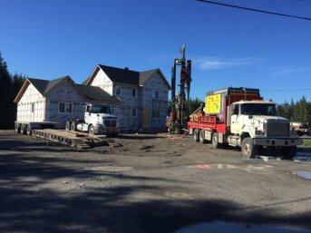 Forage d'un puits artésien pour une nouvelle résidence du Chemin Saint-Grégoire à Saint-Étienne-de-Lauzon, Lévis. Une pompe submersible a par la suite été installée dans le puits afin d'alimenter la maison en eau.